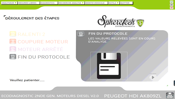 • Figeage écran en fin de protocole sans affichage du rapport de diagnostic :